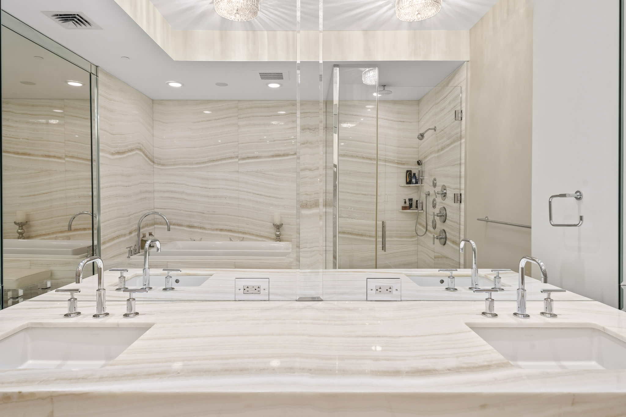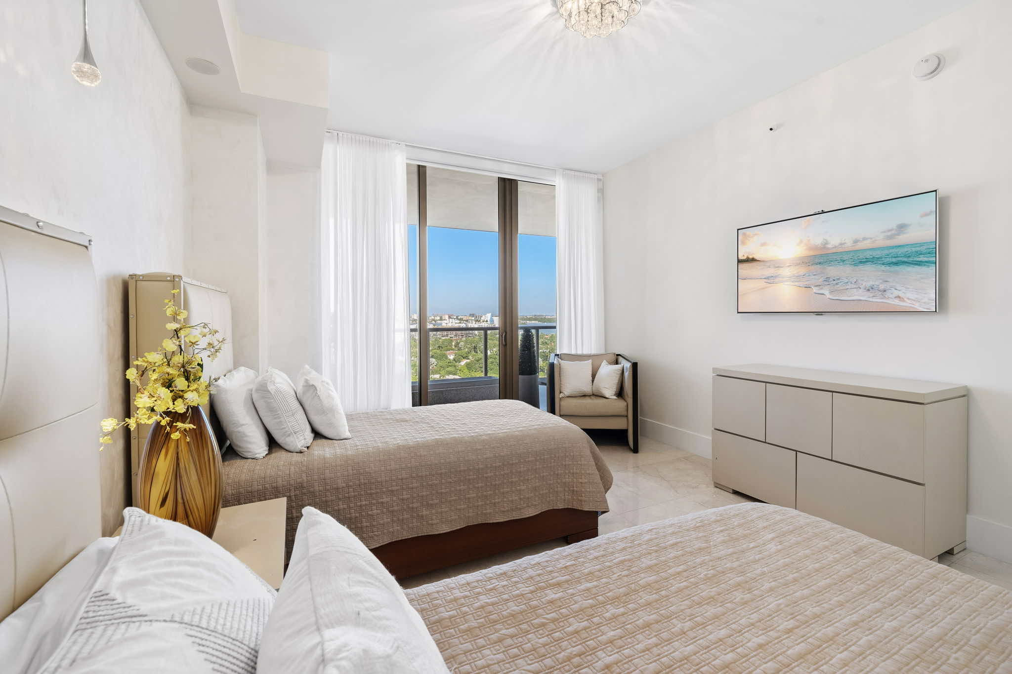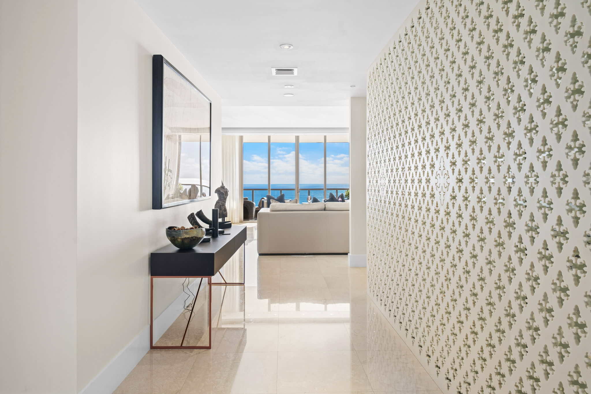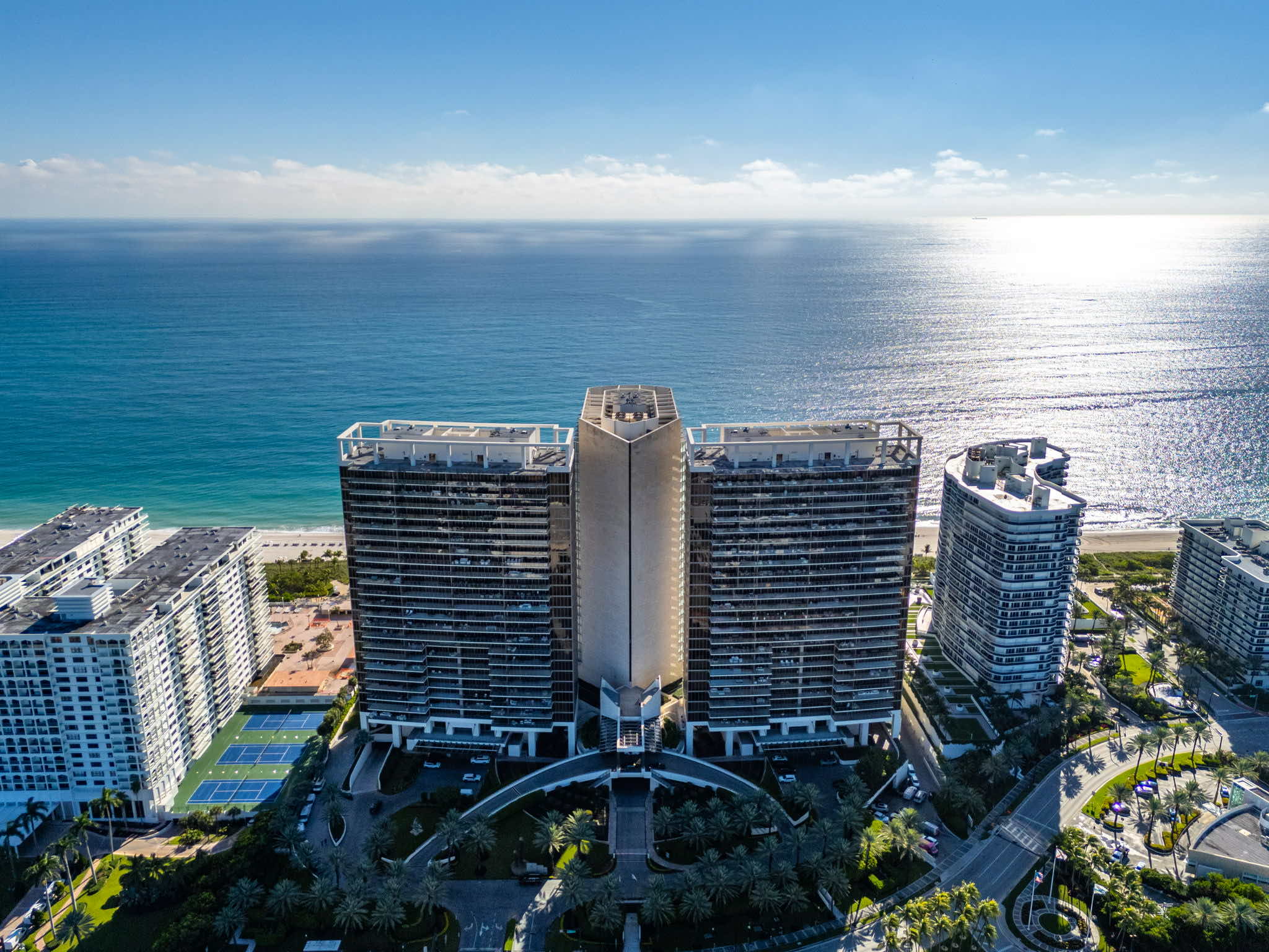 Enjoy Sunrise & Sunset at This Designer-Decorated Flow-Through Residence at St. Regis Bal Harbour. Elegant 3-bed, 3.5-bath residence on the 14th floor of the coveted Tower North. Move-in ready with custom designer finishes, marble accents, and a split layout ideal for privacy and entertaining. The east terrace showcases direct ocean views from the primary and second bedrooms, while the west terrace off the third bedroom, kitchen, and family room offers stunning sunsets and the Miami skyline. St. Regis offers five-star amenities: concierge, private beach service, full-service spa, three pools, and fine dining. Experience refined Bal Harbour living.