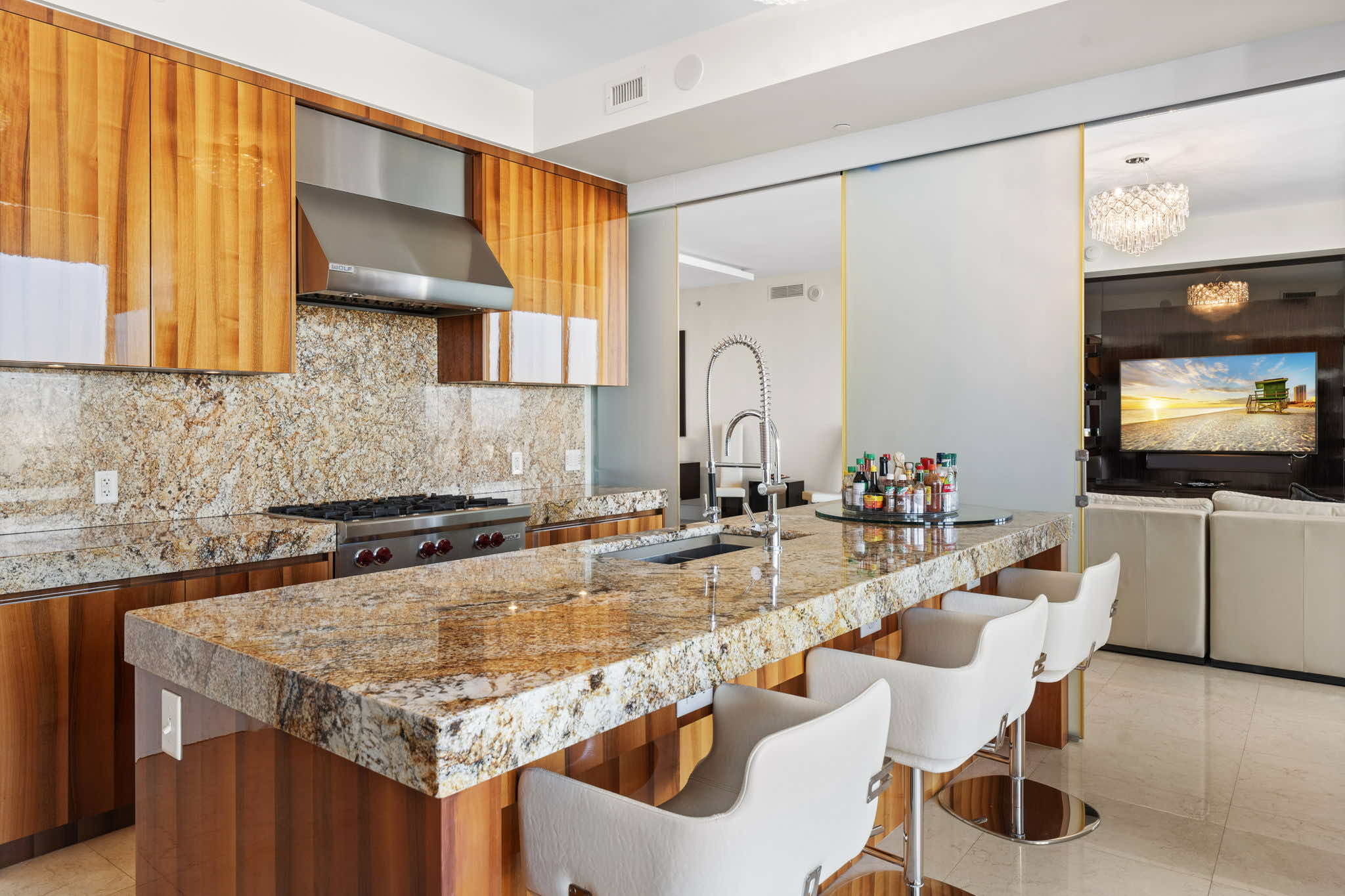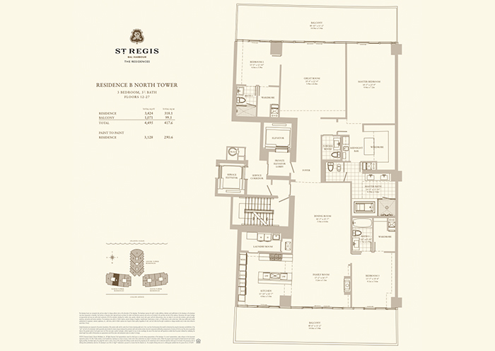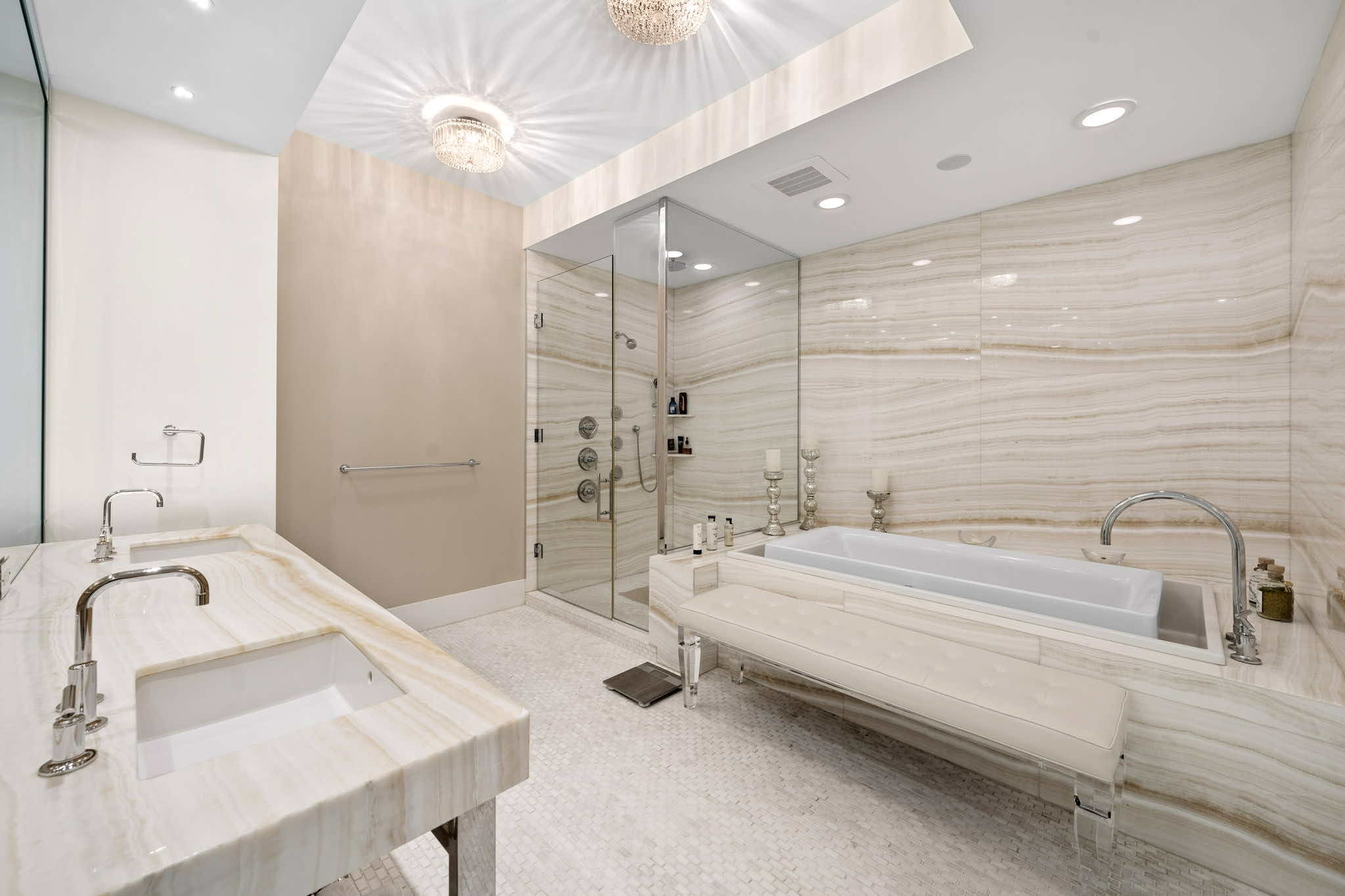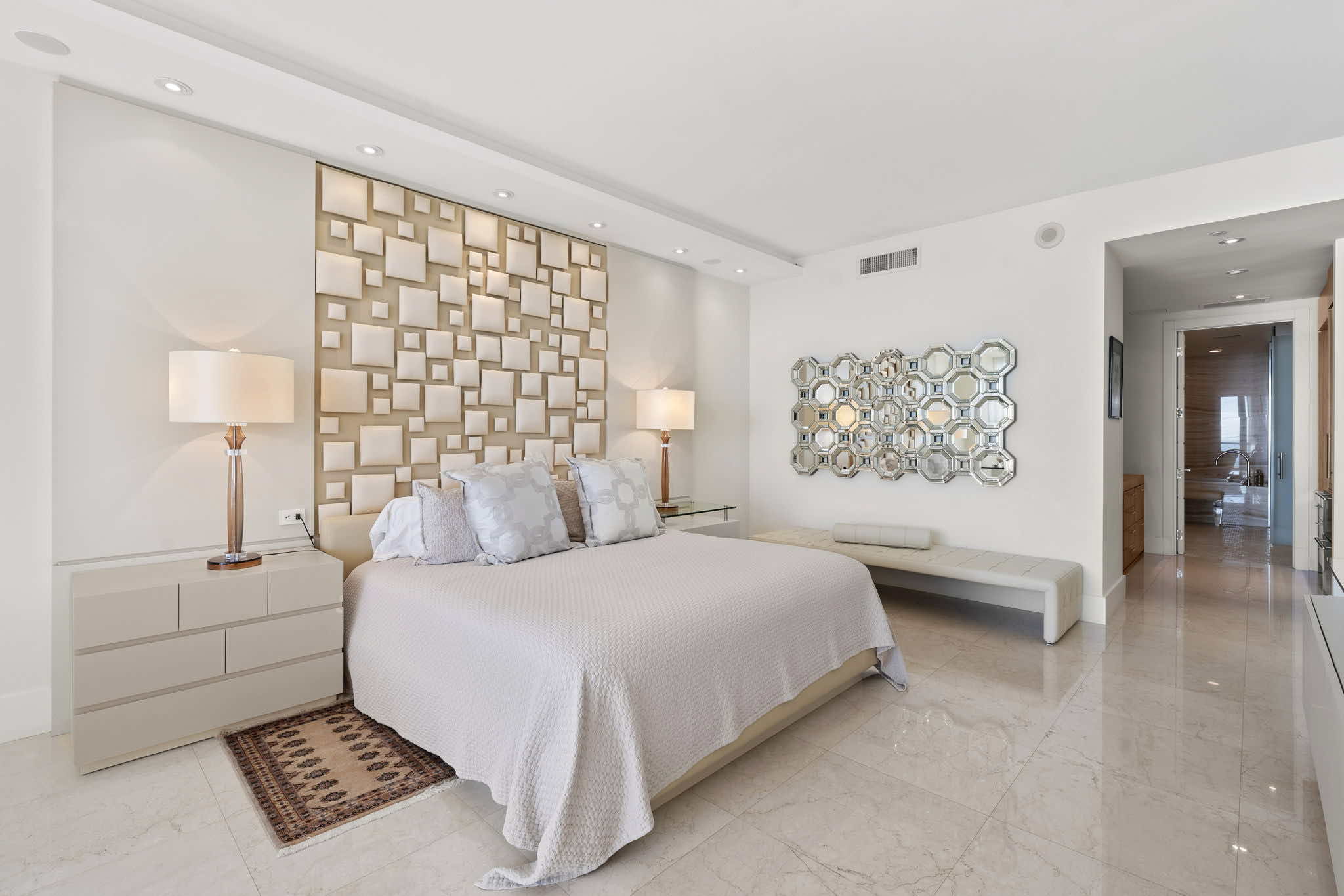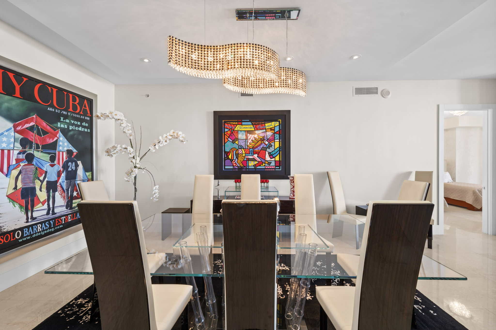 Enjoy Sunrise & Sunset at This Designer-Decorated Flow-Through Residence at St. Regis Bal Harbour. Elegant 3-bed, 3.5-bath residence on the 14th floor of the coveted Tower North. Move-in ready with custom designer finishes, marble accents, and a split layout ideal for privacy and entertaining. The east terrace showcases direct ocean views from the primary and second bedrooms, while the west terrace off the third bedroom, kitchen, and family room offers stunning sunsets and the Miami skyline. St. Regis offers five-star amenities: concierge, private beach service, full-service spa, three pools, and fine dining. Experience refined Bal Harbour living.
